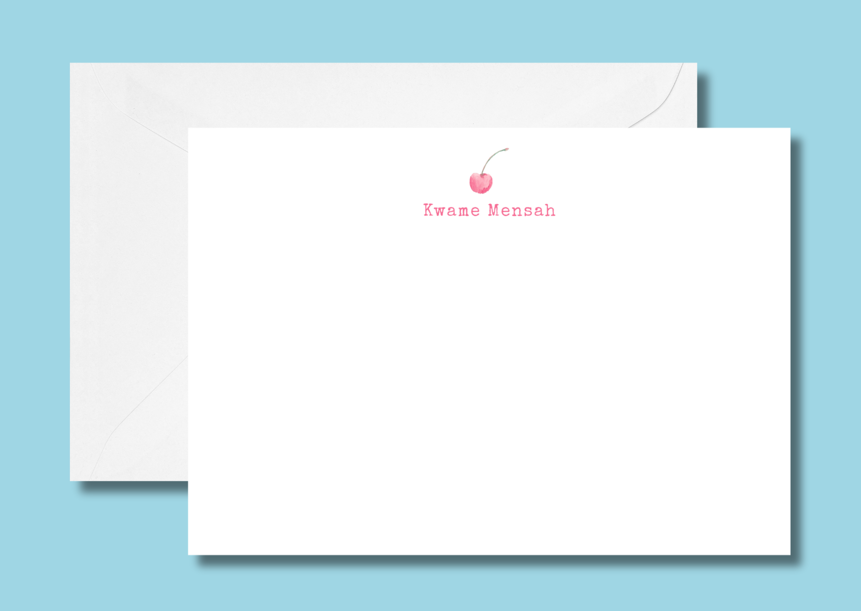 Hand drawn cherry on an A6 card, personalised with your name.