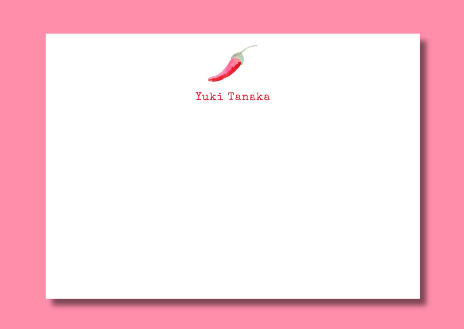 Hand drawn spicy hot chili on an A6 card, personalised with your name.