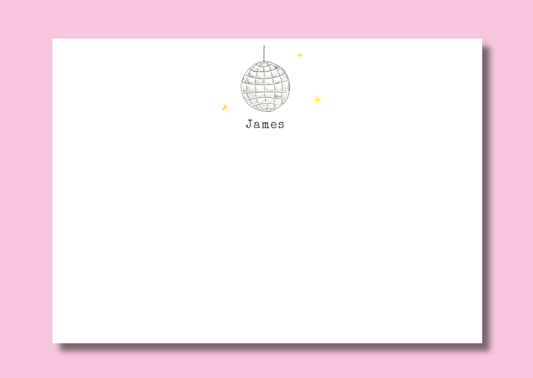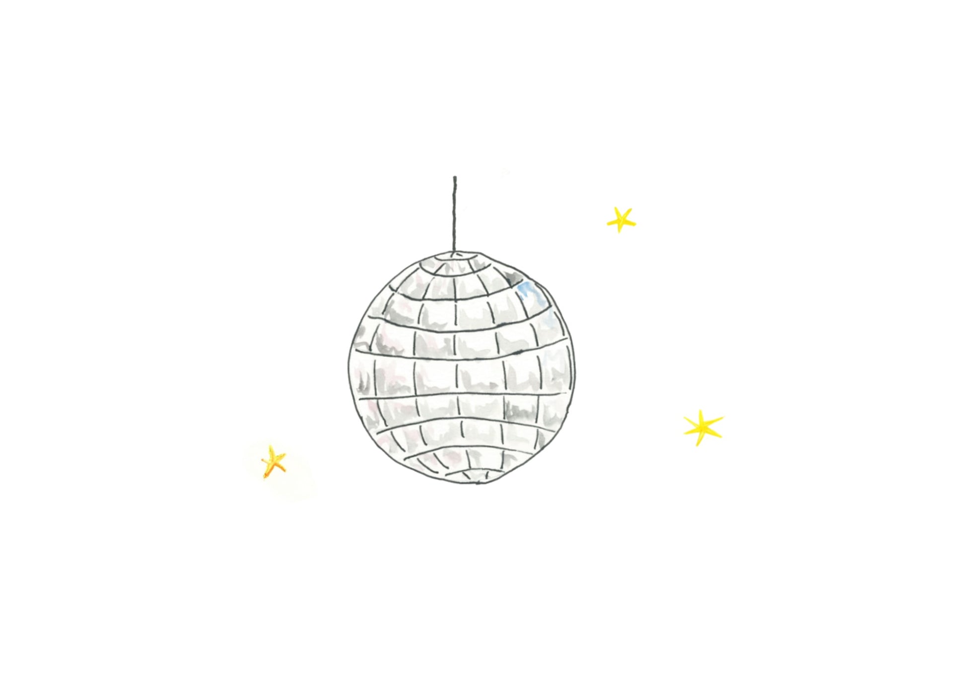 Hand drawn disco ball on an A6 card, personalised with your name.