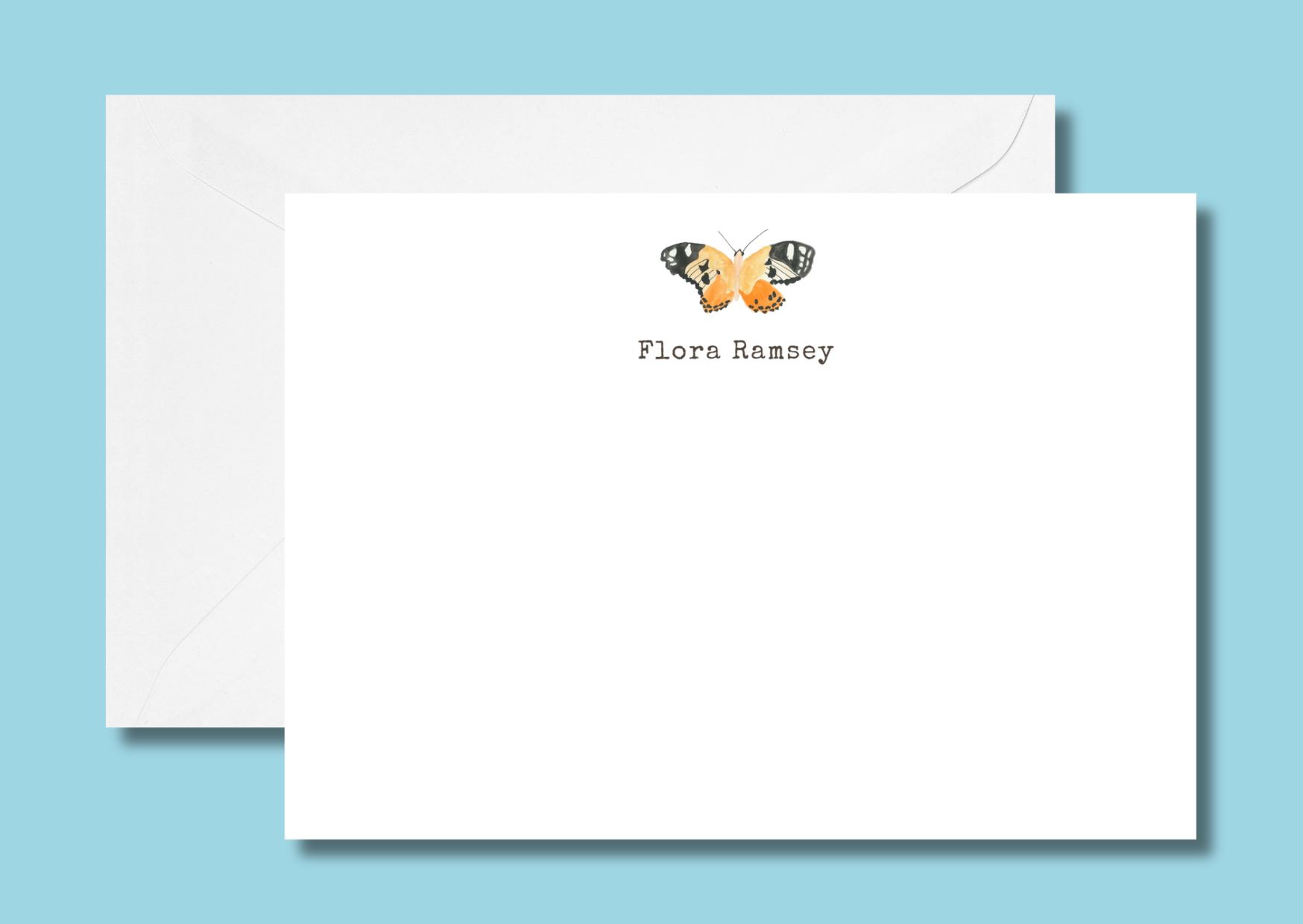 Hand drawn butterfly on an A6 card, personalised with your name.