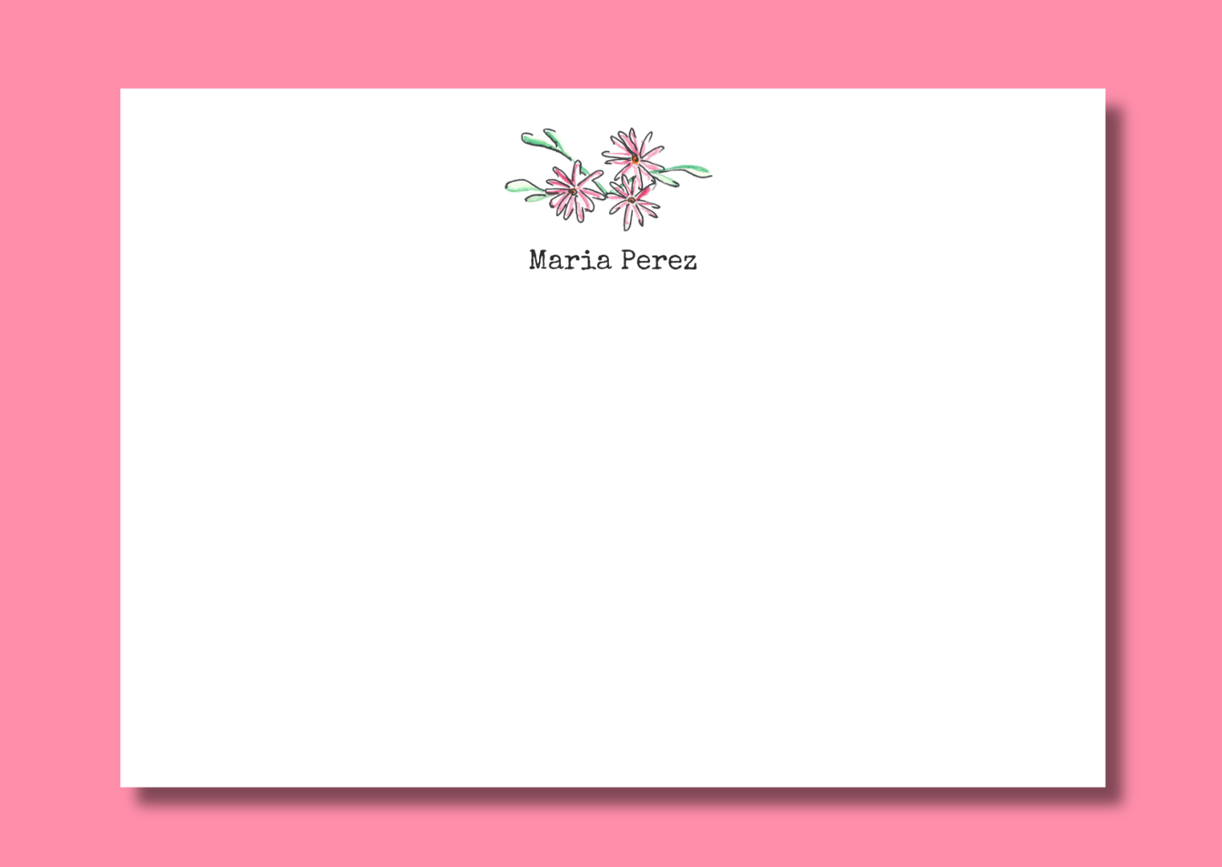 Hand drawn pink coneflowers on an A6 card, personalised with your name.