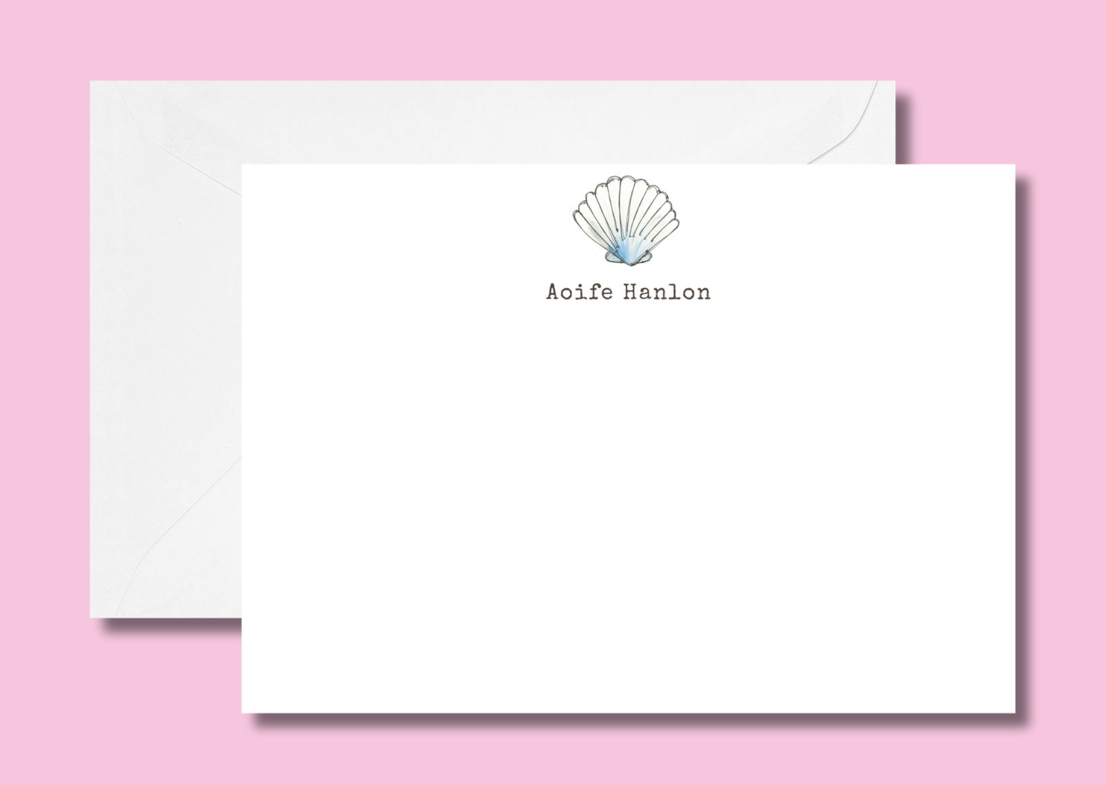 Hand drawn scallop shell on an A6 card, personalised with your name
