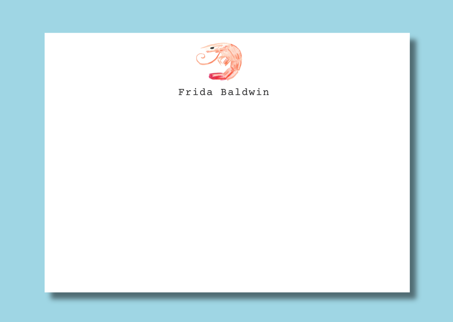 Hand drawn shrimp on an A6 card