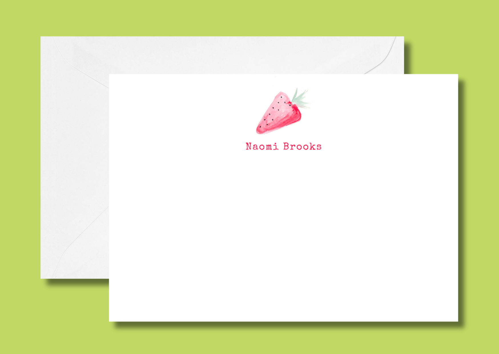 Hand drawn strawberry on an A6 card, personalised with your name.