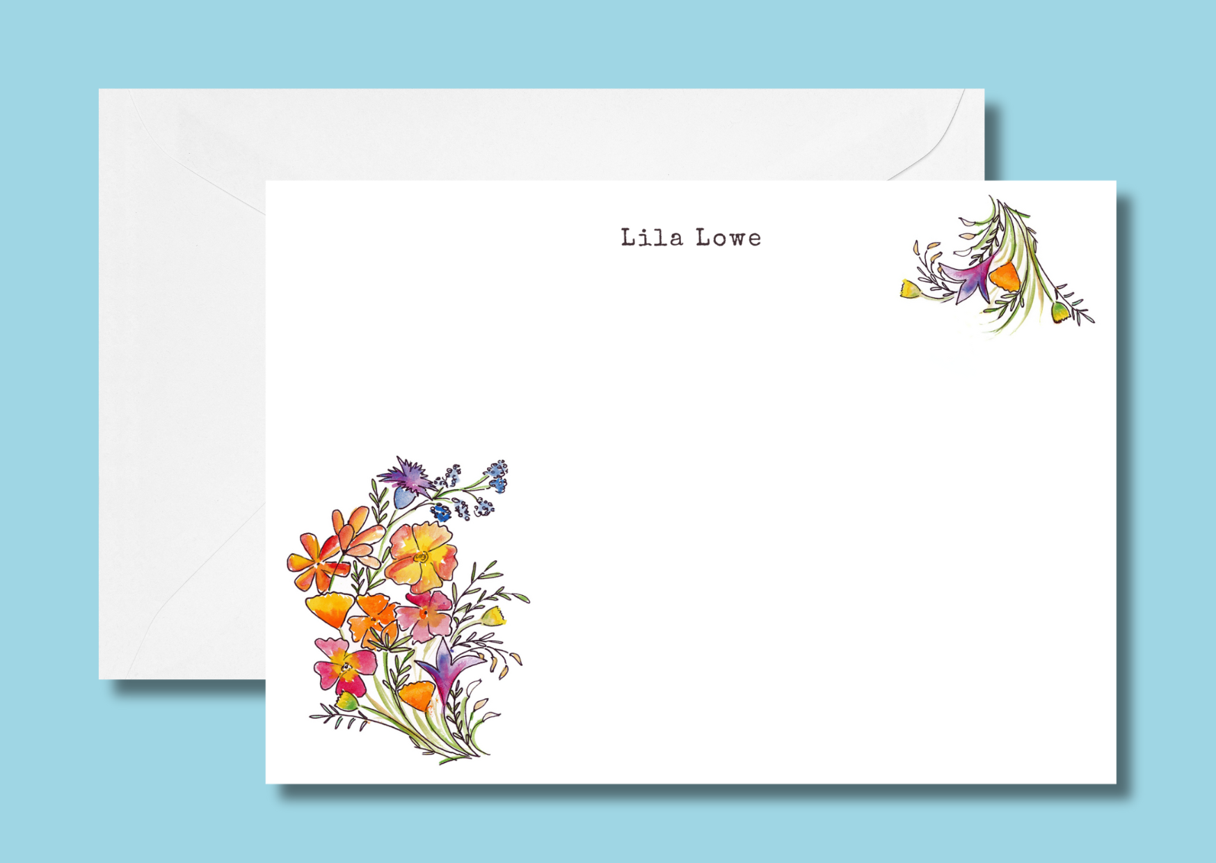 Hand drawn summer wildflowers on an A6 card, personalised with your name