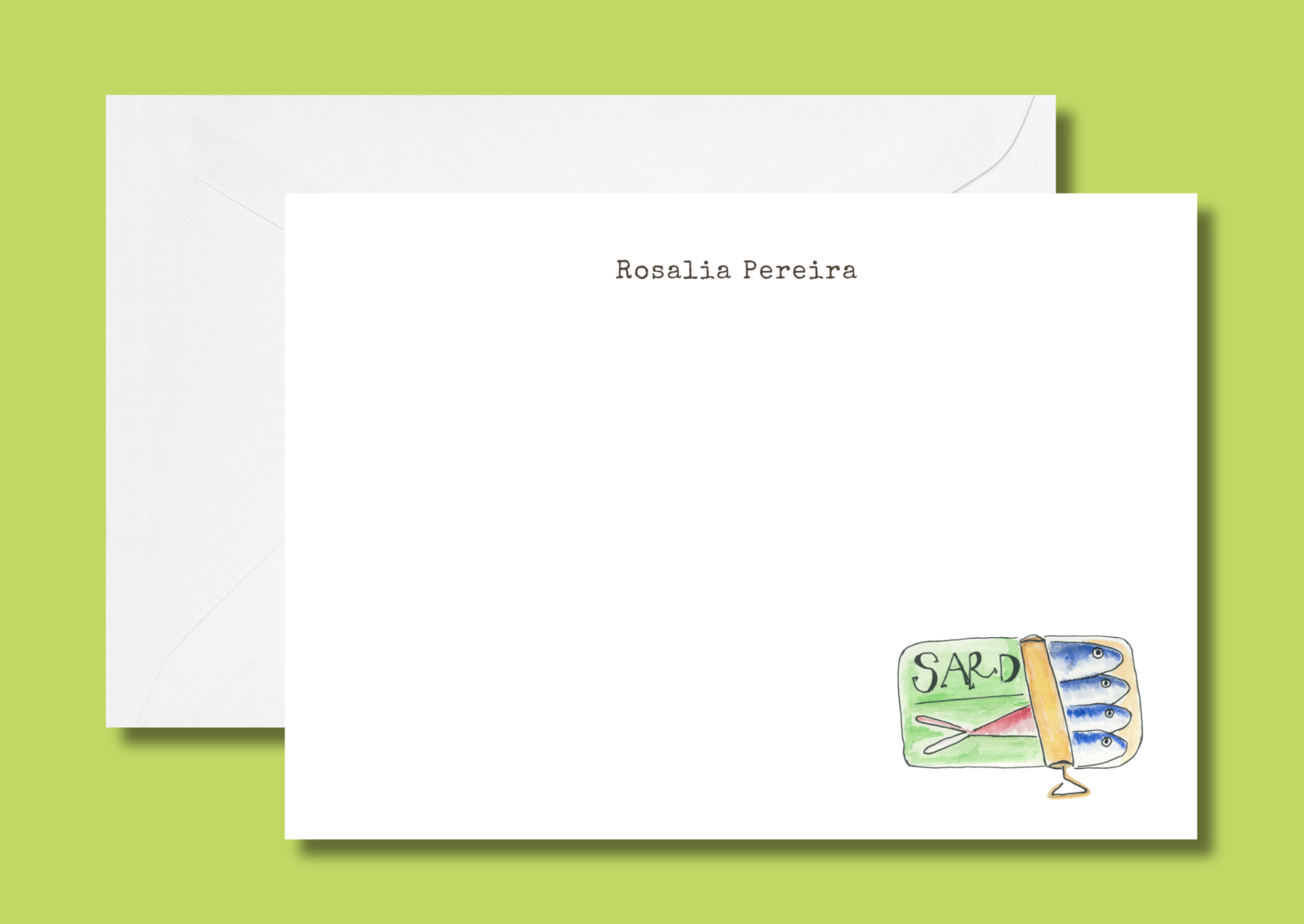 Hand drawn tin of sardines on an A6 card, personalised with your name.